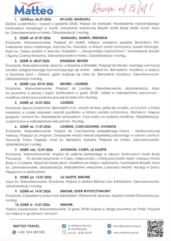Wyjazd organizuje Biuro Podróży Matteo Travel