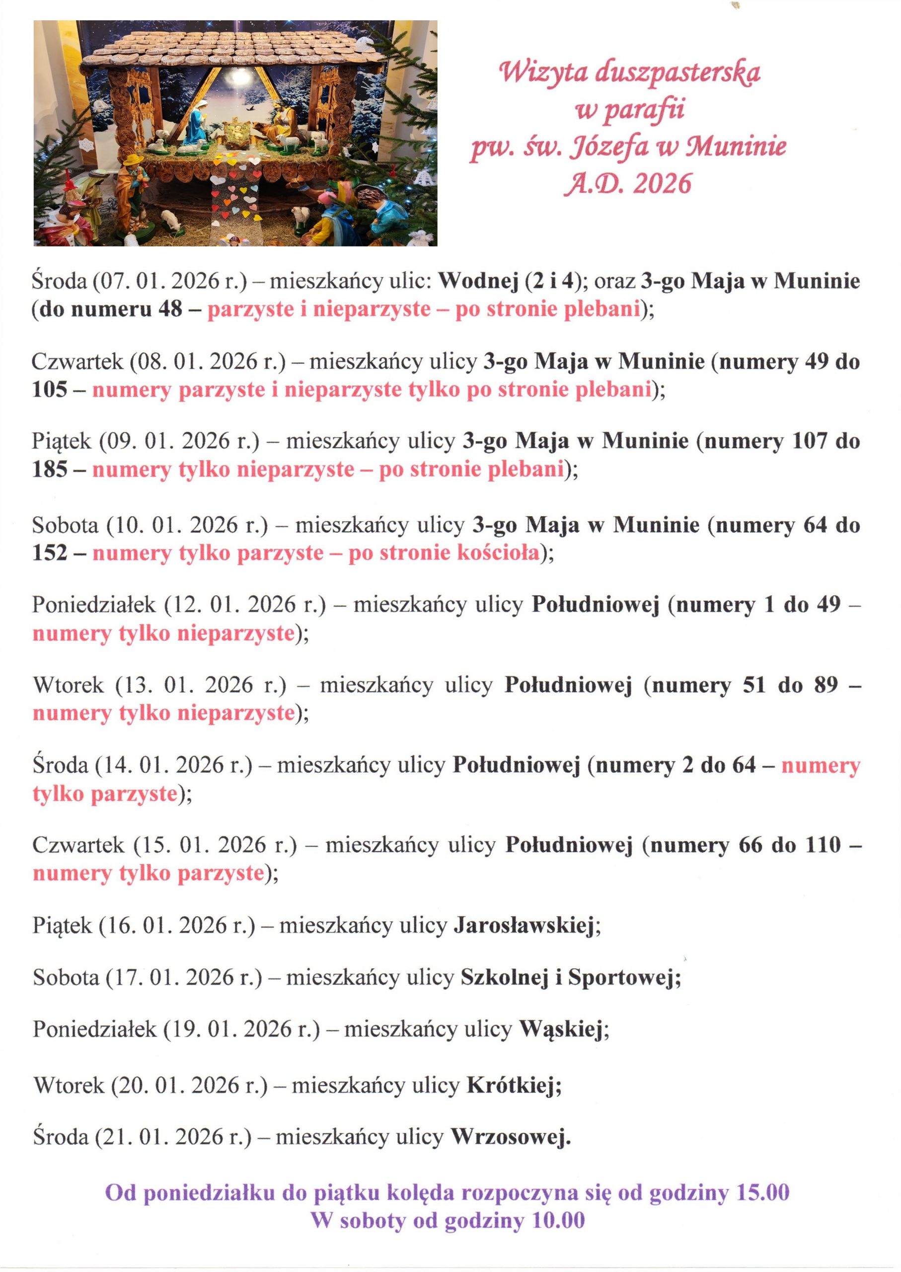07.00 – Wyjście na pielgrzymi szlak z kościoła p.w. św. Józefa w Muninie